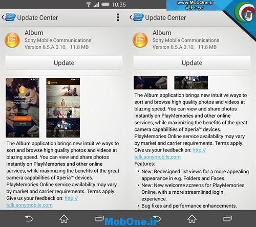 سونی نسخه جدید آلبوم Album 6.5.A.0.10 برای گوشی های اکسپریا منتشر کرد در این به روزرسانی که از امروز در آپدیت سنتر گوشی های اکسپریا مشاهده شد برنامه آلبوم به نسخه ۶٫۵٫A.0.10 ارتقا پیدا کرده است که باز هم این البوم ...