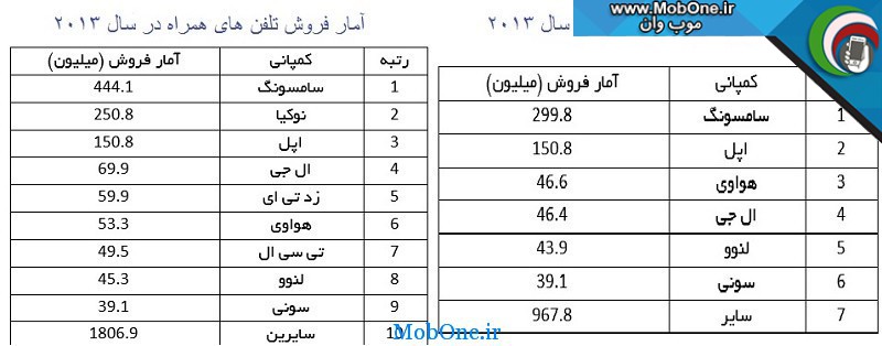 دوستان عزیز با یک خبر جالب در خدمتتون هستم به گزارش سایت موب وان آمار پرفروش ترین شرکت های تلفن همراه در سال 2013 رو ببینید امروز امار و فروش سال ۲۰۱۳ شرکت های مختلف سازنده تلفن همراه رو براتون میزارم و شرکت ابر قدرت ...