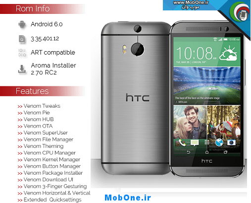 سلام رام کاستوم و فول فارسی اندروید 6.0.1 و سنس 7 برای HTC One E8 تمام مدل ها را اماده کردیم این رام توسط تیم موب وان تست شده و تمامی امکانات htc را داراست و امکانات اضافی به ان ...